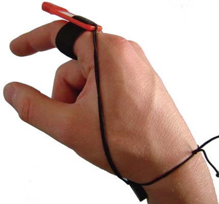 Passar bl a Sportident och Emit. Med den elastiska säkerhetslinan fäst i pinnen samt runt handleden (snabbspänne) riskerar du inte att tappa pinnen.