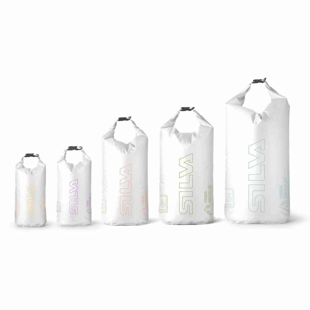 Terra Dry Bags är en uppdaterad version av Silva R-Pet serien som också var i återvunnet material men som var designade i olika färger och med fullfärgstryck. Med Terra-serien har det lagts ännu mer fokus på att minska miljöpåverkan och därför har alla infärgning och färgtryck reducerats till ett minimum. Resultatet är denna serie som har ofärgat polyestertyg med endast en utskuren logotyp som enda färgtryck.