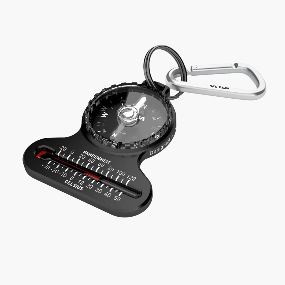 En liten och enkel kompass med termometer som visar de huvudsakliga riktlinjerna. Tack vare dess kompakta storlek och precisa nål så är det här en mycket smidig kompass att ta med på en vandringstur.