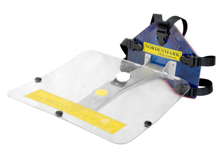 Anatomiskt utformad frontplatta som är skumplastisolerad. Snabblåsning för snabb och enkel av- och påtagning. Reglerbara elastiska remmar för exakt passform. Tryckknappslåsning i kartfickan möjliggör låsning genom kartan.