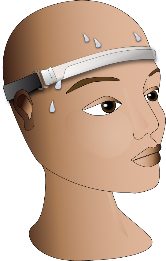 Vapros nya svettband har en kanal tillverkad i silikon som transporterar bort svett från pannan. Silikonet ligger följsamt mot huden och resårbandets storlek justeras med kardborre. Svettkanalen gör att svetten rinner undan åt sidorna istället för att absorberas upp som i traditionella svettband. Svettbandet finns i två utföranden, med svart resårband med orienteringsskärmar eller med helsvart resårband.