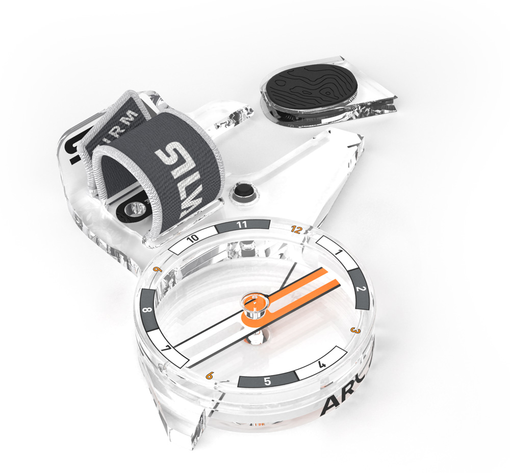 • Om du är i behov av mer detaljerad kartläsning, så finns förstoringsluppen Arc Zoom som separat tillbehör. Arc Zoom fästs med hjälp av tumbandet på basplattan och är designad för att integreras perfekt med kompassen.