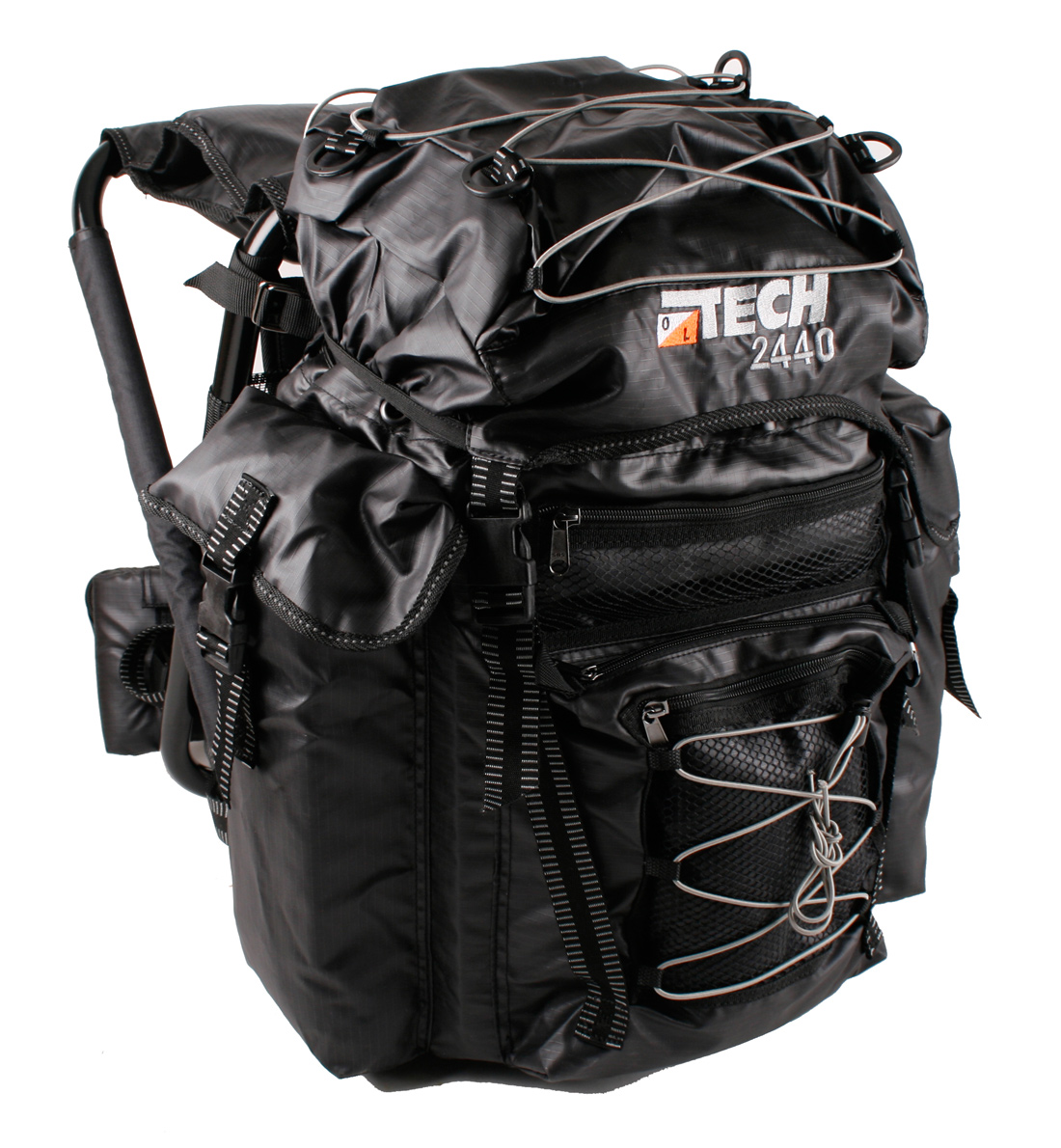 Vattentätt och mycket lätt material (TPU). Stolsram i lättaluminium med stor yta att sitta på ca 33x24 cm.