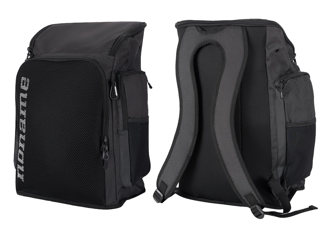 En stor ryggsäck för all din utrustning. Slitstarkt tyg och ordentliga dragkedjor. Två sidofickor med dragkedjor samt en stor ficka framtill med dragkedja. Höjd 54cm/bredd 32cm/djup 25cm.