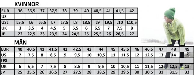 Storlekstabellen är generell för nedan modeller av skor.